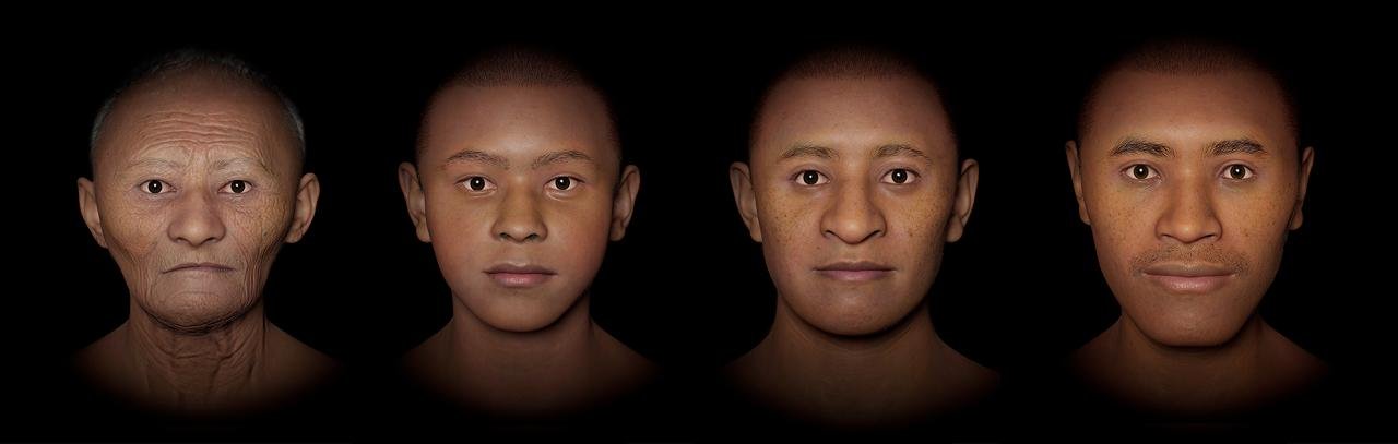 The reconstruction process combined forensic techniques with artistic interpretation. Researchers layered muscles, soft tissue, and fat onto the 3D skull models and used tissue depth data of modern adults in Colombia to guide proportions. As these do not exist for Colombian children or elderly women, the researchers adjusted features such as fat distribution and muscle shape to model what each would have looked like. The nose was determined through exact measurements of the nasal bones, and skin, hair, and eye color were based on what would have been typical for the region.