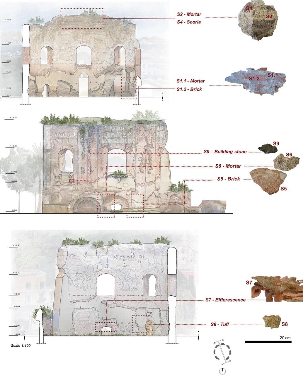 Researchers conducted a detailed material analysis of the temple that was published in Geoheritage. They studied nine small samples from key parts of the monument, including different mortars, brick fragments, volcanic scoria, tuff, lava stone, and a salt efflorescence deposit. By means of petrographic microscopy and X-ray diffraction, the team was able to reconstruct the composition and behavior of the materials selected by the Roman engineers almost 1,900 years ago.