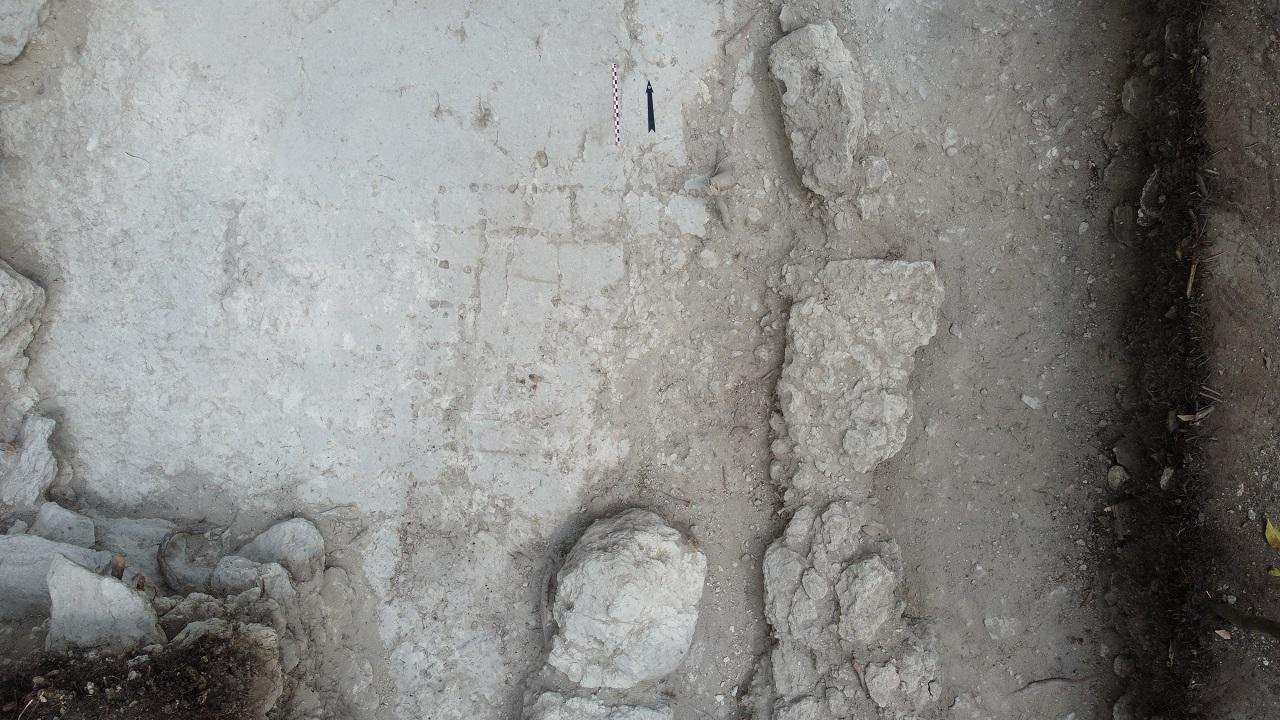 The board, found beneath later construction and partly obscured by a wall, clearly predates the room’s final phase. Unlike the roughly scratched patolli boards documented elsewhere across the Maya lowlands, this one was built intentionally into the flooring, indicating that it was part of the structure’s original design.