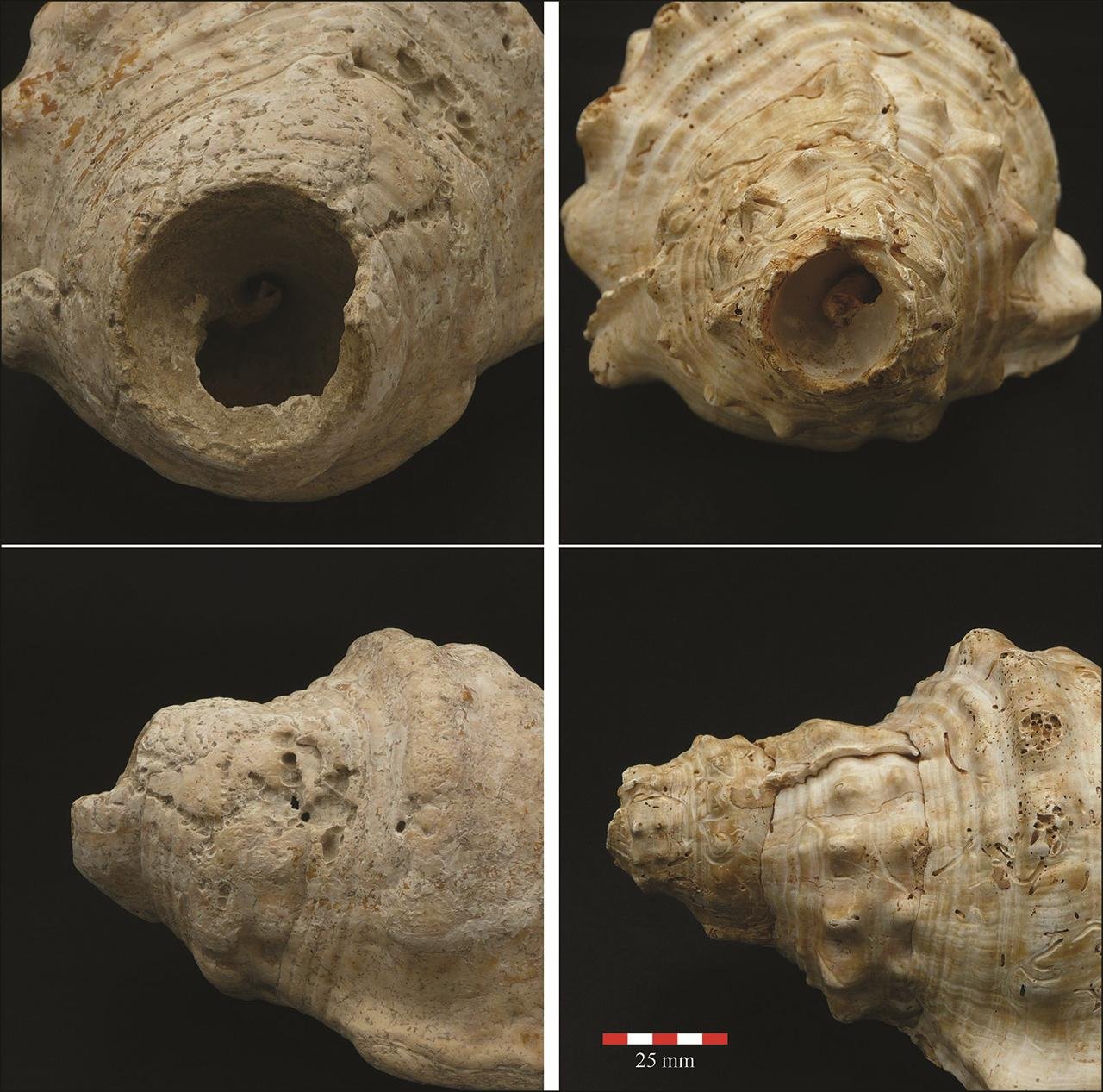 More than a dozen such shells have been found within the relatively small region stretching from the lower Llobregat River across to the Penedès depression and parts of the Barcelona plain. Their apexes have been carefully removed, suggesting intentional modification, and traces on the shells reveal that these were collected after the molluscs had died. This suggests that the shells were not collected for food but solely for their acoustic qualities.