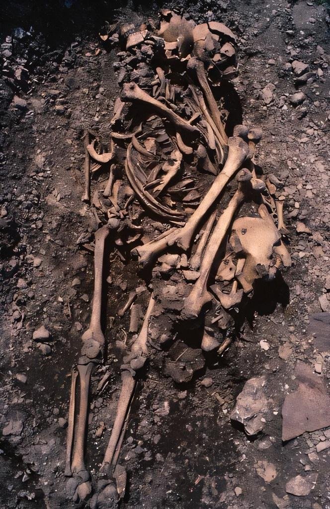 One grave held a woman about 20 years old. Two small children lay on either side of her, a boy and a girl. DNA shows the children were full siblings. The woman was not their mother. She was likely their father’s sister or a half sister. The placement suggests close family bonds, though not a direct parent-child link.