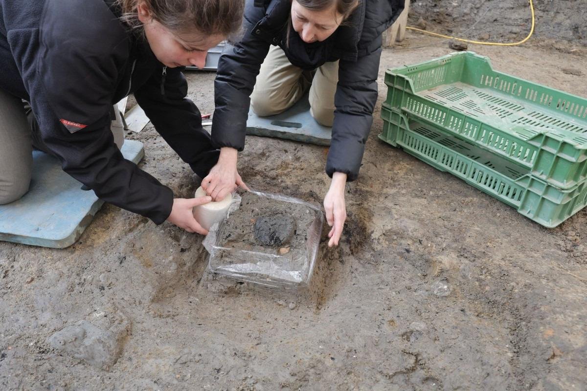 Close to the fortification line, archaeologists uncovered a carefully built clay oven. Its size and construction suggest use for large-scale food preparation. Near this oven, the team noticed a dark, rounded object in the soil. They removed it along with the surrounding sediment and transported it to a laboratory for detailed examination.